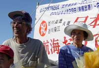 ヨット部の同窓生。定年を待ち焦がれて。 03年4月26日〜8月31日 下関経由日本海沿岸を北上し函館に寄港。北海道を反時計周りに一周し、下三陸海岸を南下、潮岬を回航して紀伊水道を北上、鳴門海峡を通過してホームポートへ。 ★航海記はリンク切れ |