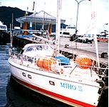 2001年7月26日〜2002年7月22日 室蘭を出て、沖縄宜野湾で越冬し、時計回りに列島を一周。ご夫婦合わせて150歳になろうというパワーに脱帽。マイペースで着実に、そして楽しくの航海。 99年8月には一ヶ月半かけて 北海道一周も行っている。 ★航海記はこちら 谷川義徳氏ご逝去 04年7月19日に永眠されました。奇しくも海の記念日でした。享年75歳。合掌。 |