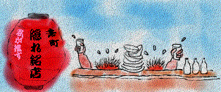 | 居酒屋「魚田」 | 風呂屋・旭湯の裏 清水鯖の刺身、生ビール、てんぷらなど腹一杯での値段は値打ちがある。(2003年夏) |