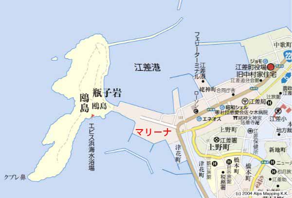 | 備考 | ・注意 マリーナ入港口に定置網。西に延びる網は海中に没している。ーきらきら丸 ・マリーナ---水道、電気、燃料供給の設備は完全ではない。ただし係船料金は安い。 |