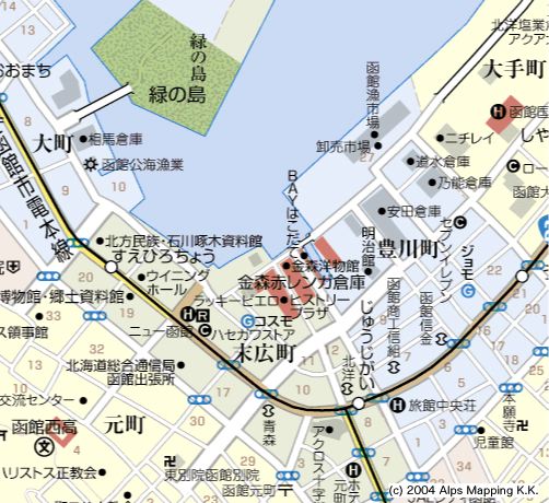 | 入港については勧進丸のHPを参照。 金森赤レンガ倉庫前の岸壁。観光スポットのど真ん中。 容量は、5−6艇。 岸壁は函館市のものなので港湾部宛に「岸壁使用許可申請書」を提出しなければならない。 金森洋物館にあるジュエリー・ショップ「チャートハウス」代表・水野さんに、入港届けなどの代行の労をお願いすることになる。 |