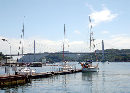 | ◇桟橋3基が新設。30フィートクラスの船が7艇係留することができ、水道・電気が利用可能になるなど充実した設備が完成。・・潮穏 '10 ◇ここの停泊料金は,1円/トンです。 潮穏は,約5tですから,5円で一晩停泊させてもらいました。・・潮穏 '10 ◇アットホームな町の人たちです。ぜひ交流を深めて下さい。 |