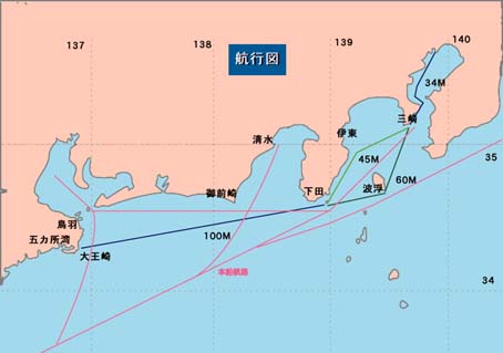 大島 → 神子島 朝に神子元島を通過、以下は第1案に同じ