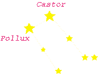 カストールとポルックス(ポリュデウケース)は、大神ゼウスとレダ〔はくちょう座参照)の間に生まれた双子。ポルックスは不死の身で乗馬の名手、カストールは不死ではないが拳闘の名手として兄弟ともに数々の武勇伝がある。